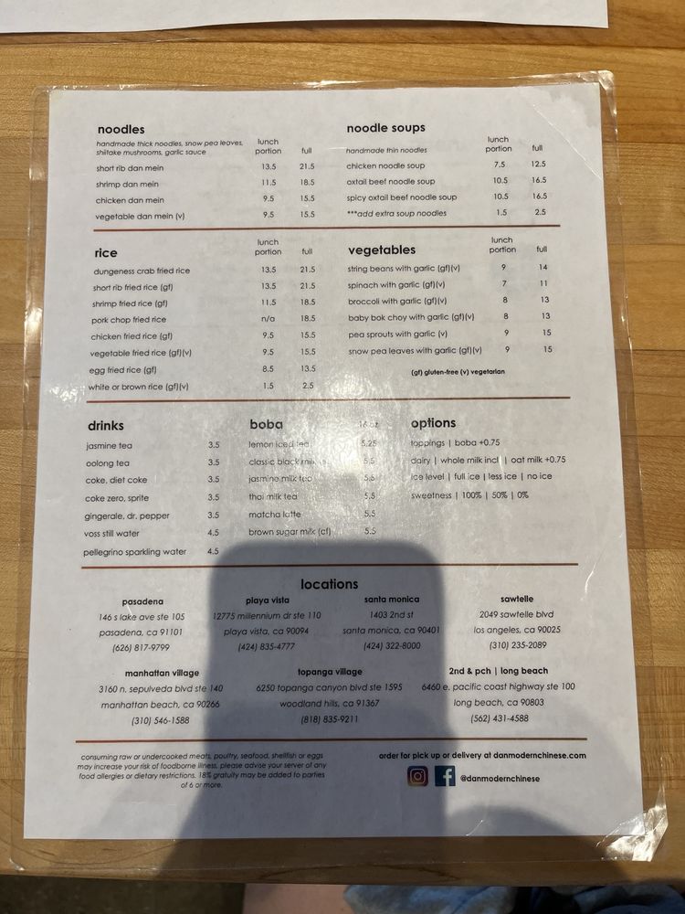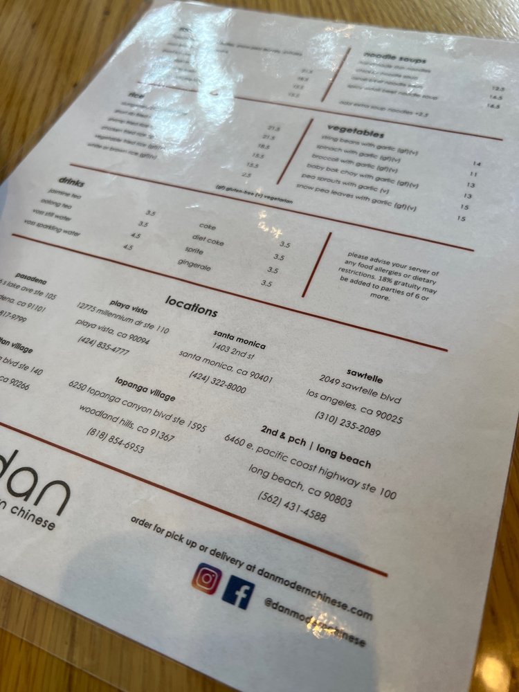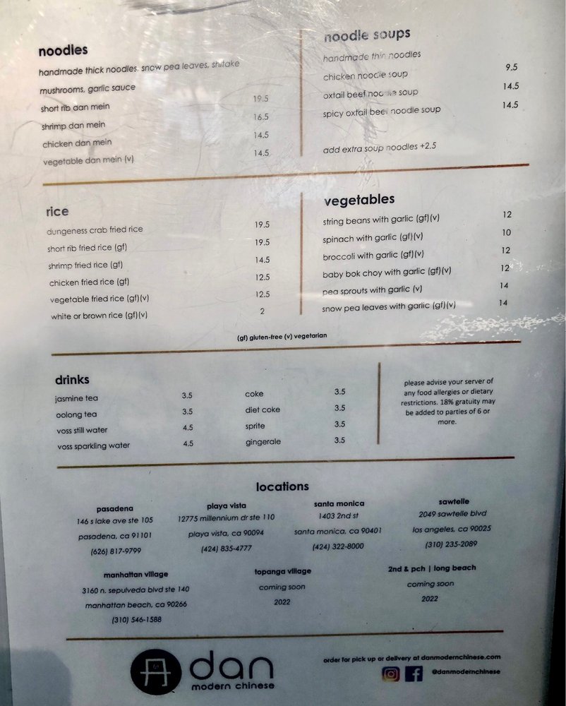 Dan Modern Chinese is a Chinese restaurant offering a wide range of menu options for both vegans and limited vegetarians. Located in Santa Monica, CA, this casual dining spot provides various utilities including reservations, delivery, and takeout. The restaurant is dog-friendly and offers gender-neutral restrooms, making it inclusive for all diners. With outdoor seating available, guests can enjoy their meal al fresco. The menu features traditional Chinese dishes with a modern twist, providing a unique dining experience. The ambiance is perfect for group dinners or a casual meal. Don't miss out on trying their specialties and experiencing the flavors of dan Modern Chinese.